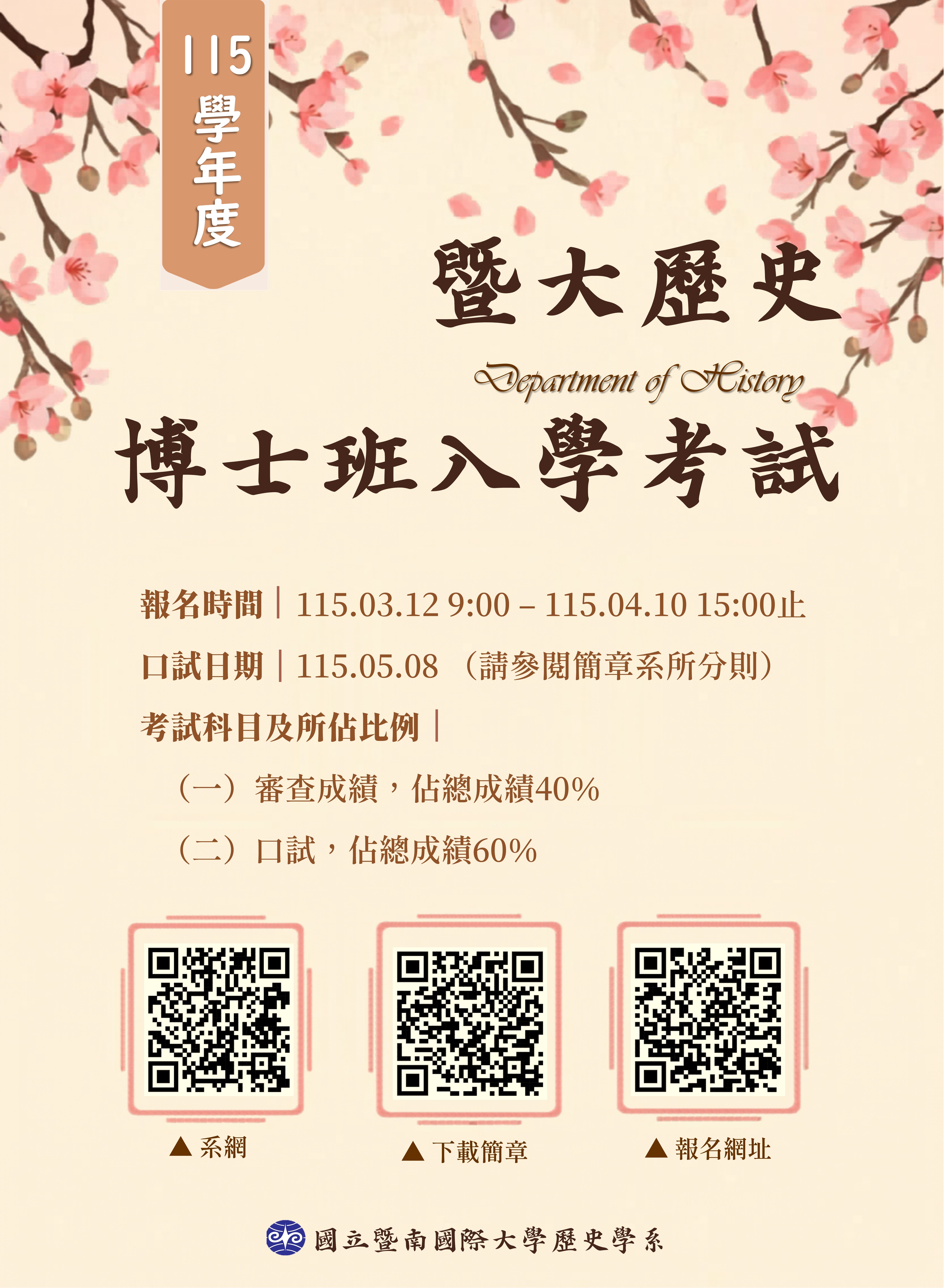115學年度暨大歷史博士班入學考試